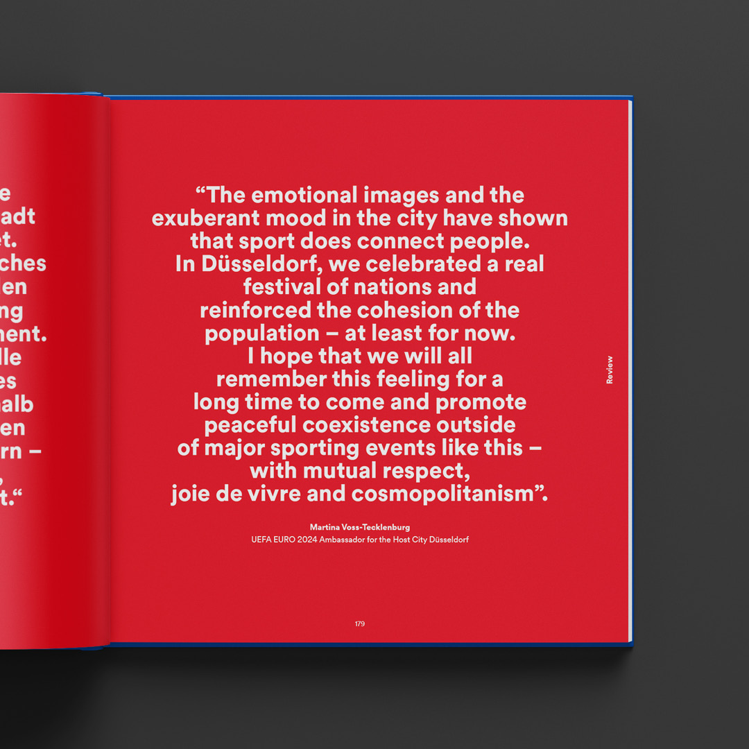Die Ergebnisse dieser fulminanten Reise hat Düsseldorf in einem beeindruckenden Bildband verewigt. Eine Hommage an den Erfolg, eine Inspiration für die Zukunft – und die perfekte Bauanleitung für alle, die eines Tages ihre eigene EURO-Geschichte schreiben wollen.